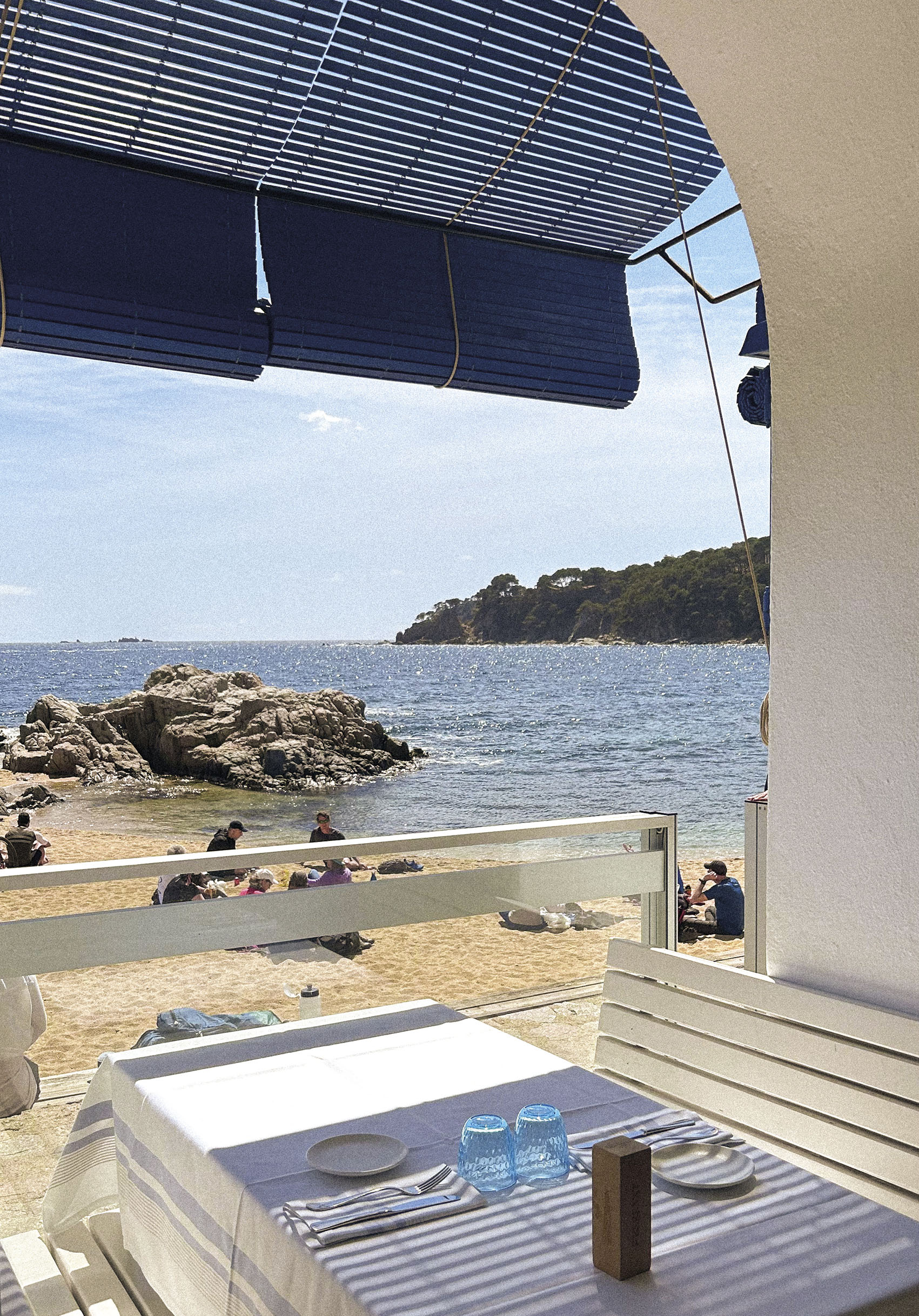 Calella siempre apetece. Aquellas calles blancas llenas de vida, las calas transparentes y rebosantes peces, barcas de todos los tamaños reposando sobre la arena… es la viva imagen de una postal de verano. Comimos en el icónico restaurante Les Voltes de Calella, con el mar como telón de fondo y envueltos en un agradable olor a sal. La cata anterior fue muy generosa, por lo que optamos por pedir dos completas ensaladas de producto de proximidad y un par de platos de pescado y marisco. Para Luca encontramos una opción rápidamente, así que todos quedamos contentos y satisfechos.